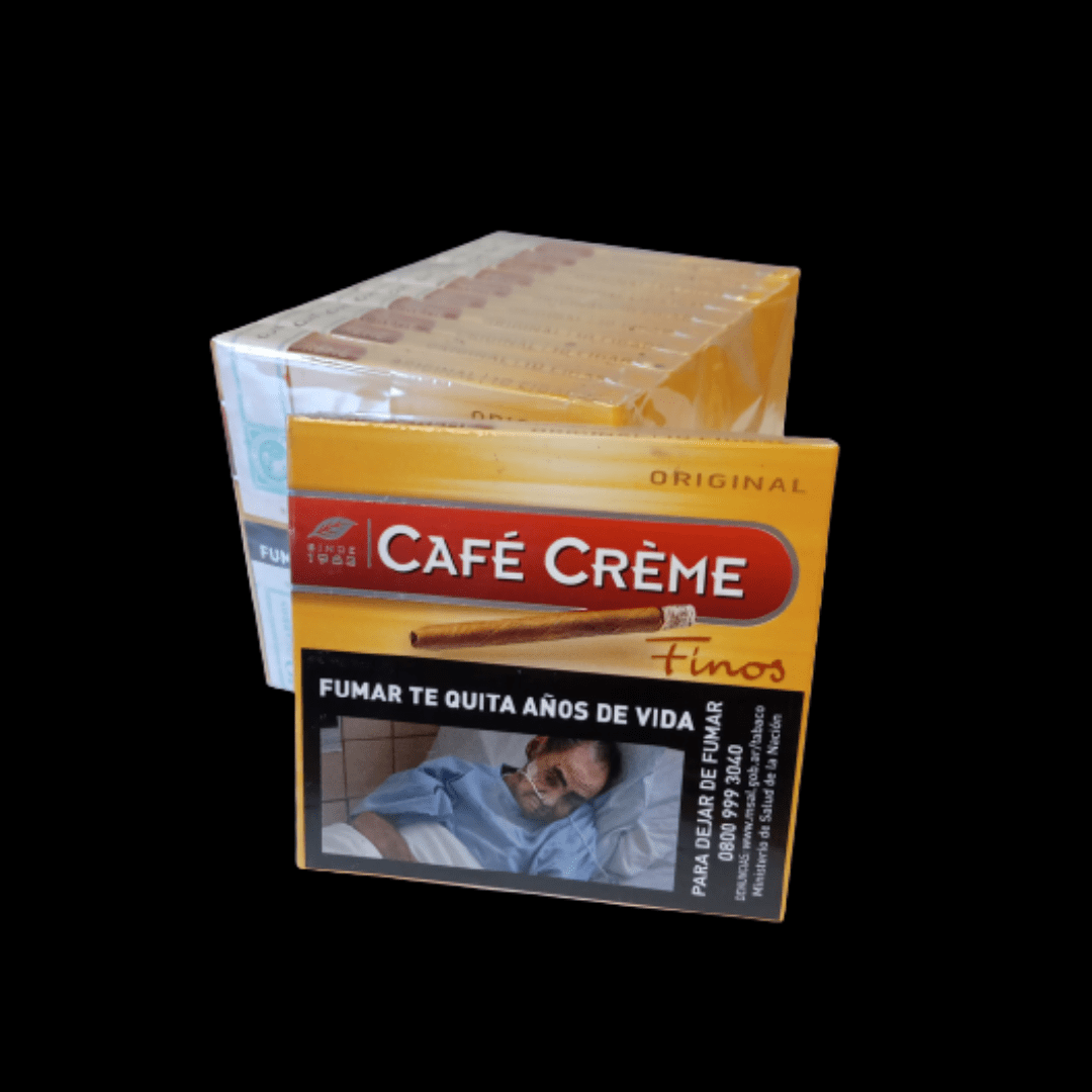 Cigarros Cafe Creme Finos Original son unos puritos de intensidad suave y 100% naturales. Confeccionados a mano en Holanda con una mezcla extremadamente suave de tabacos lisos y curados en seco. Su fumada tiene una duracion corta de aproximadamente 4 a 5 minutos por lo cuales son ideales para cuando uno esta apurado y no cuenta con mucho tiempo. Cafe Creme Finos Original es el primer cigarro pequeño del mundo, hecho a mano con tabaco colombiano, dominicano, javanés e italiano envuelto en una hoja natural de Java.