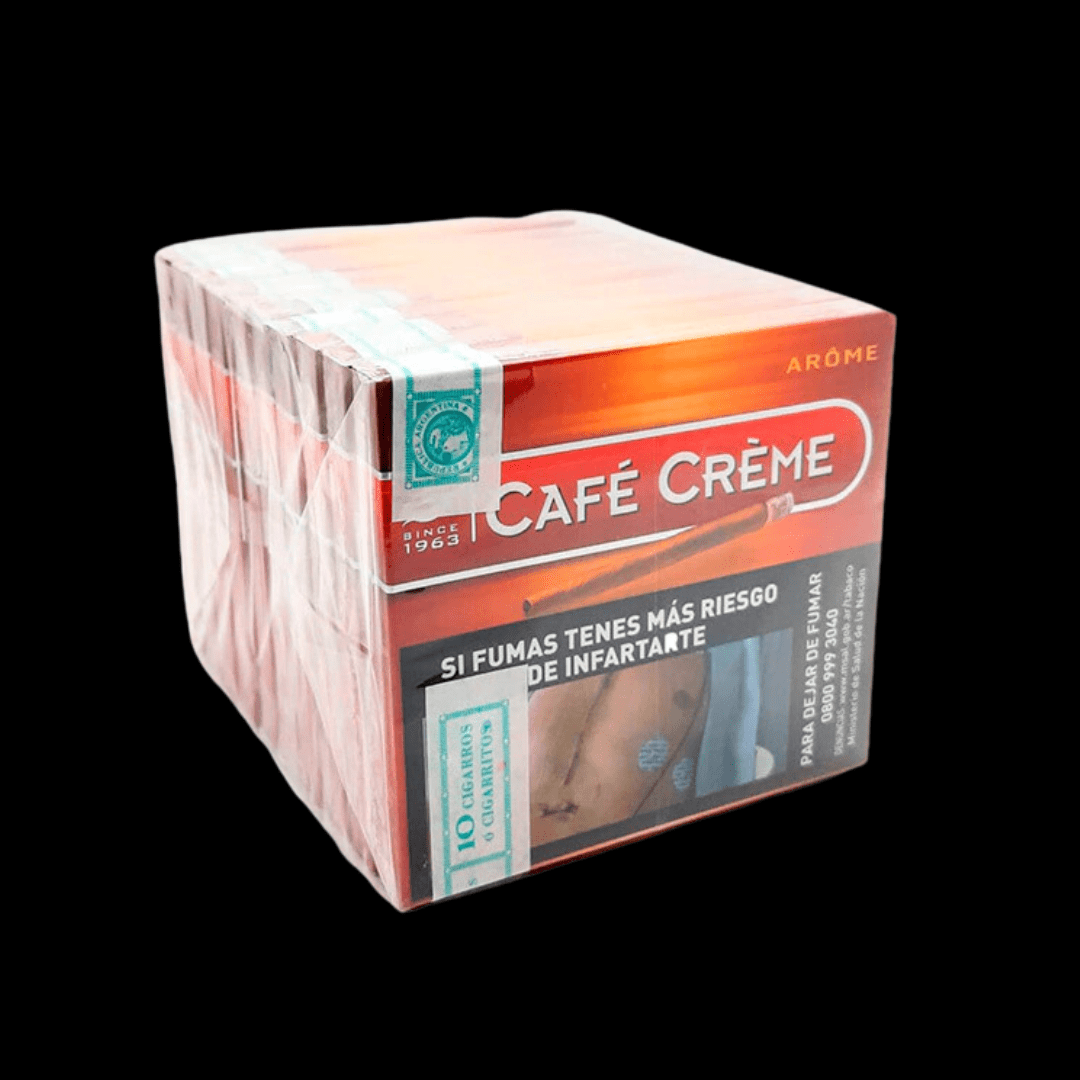 Cigarro café Creme Arome son unos puritos de intensidad suave y 100% naturales. Confeccionados a mano en Holanda con una mezcla extremadamente suave de tabacos lisos y curados en seco. Su fumada tiene una duración corta de aproximadamente 4 a 5 minutos por lo cual son ideales para cuando uno está apurado y no cuenta con mucho tiempo. Café Creme Arome emplea la misma combinación de tabacos que el Café Crème original, pero las hojas se han infundido muy sutilmente con un delicioso toque de café aromático para crear así una maravillosa experiencia de olor y sabor muy equilibrada e irresistible a cualquier paladar. Contiene 10 unidades.