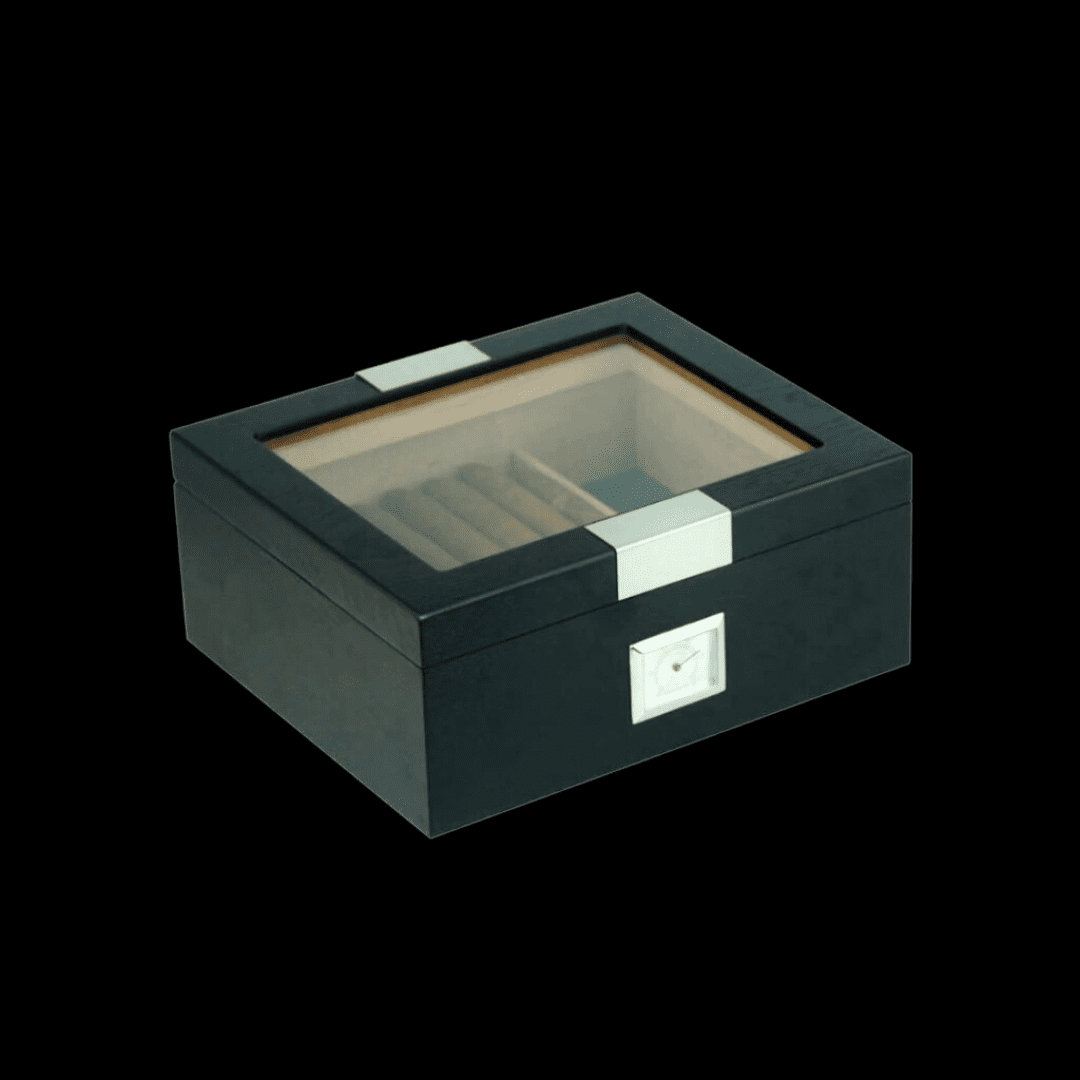 Humidor de madera chapado en ROBLE Negro de 25 unidades